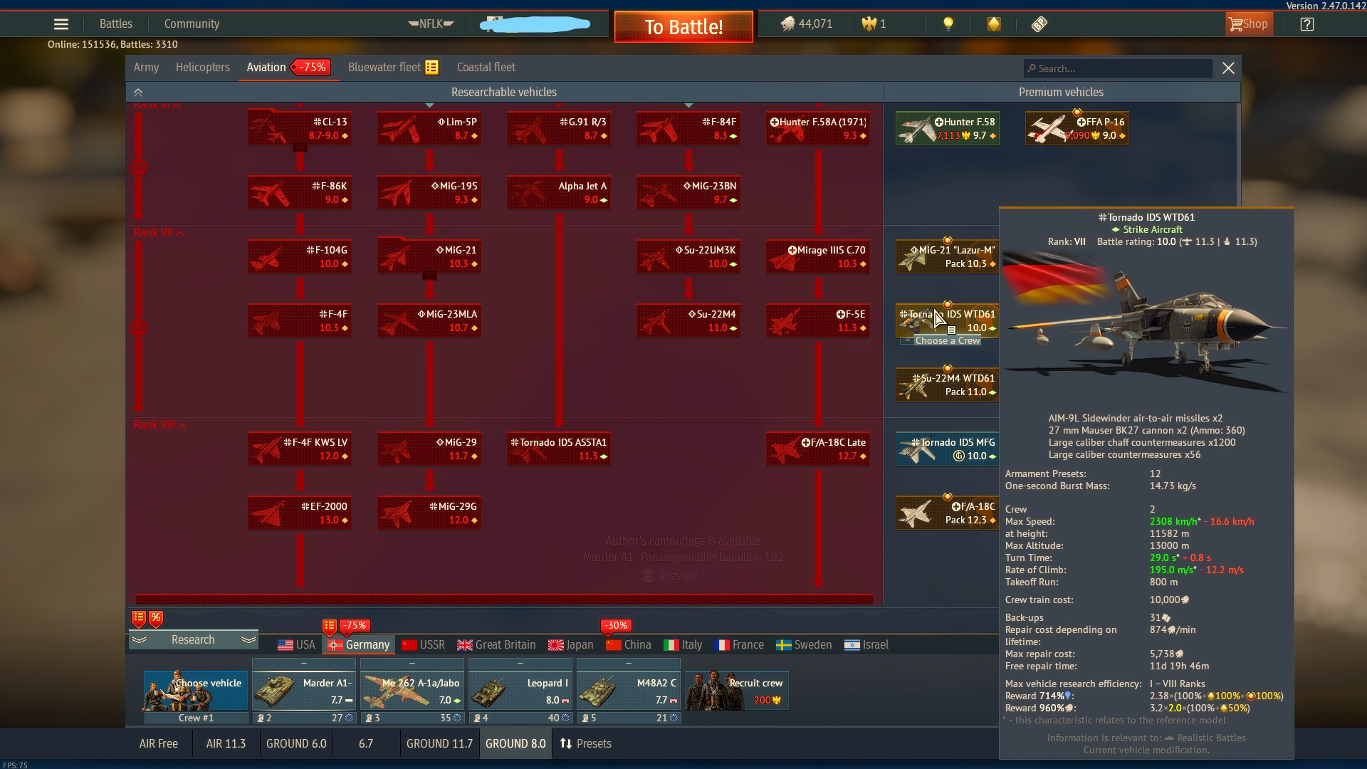 امتیاز و دیدگاه کاربران خرید اکانت وارتاندر آلمان دارای f 106 a tornado ids (perm) کد #34