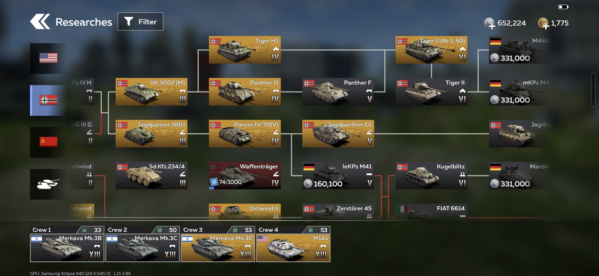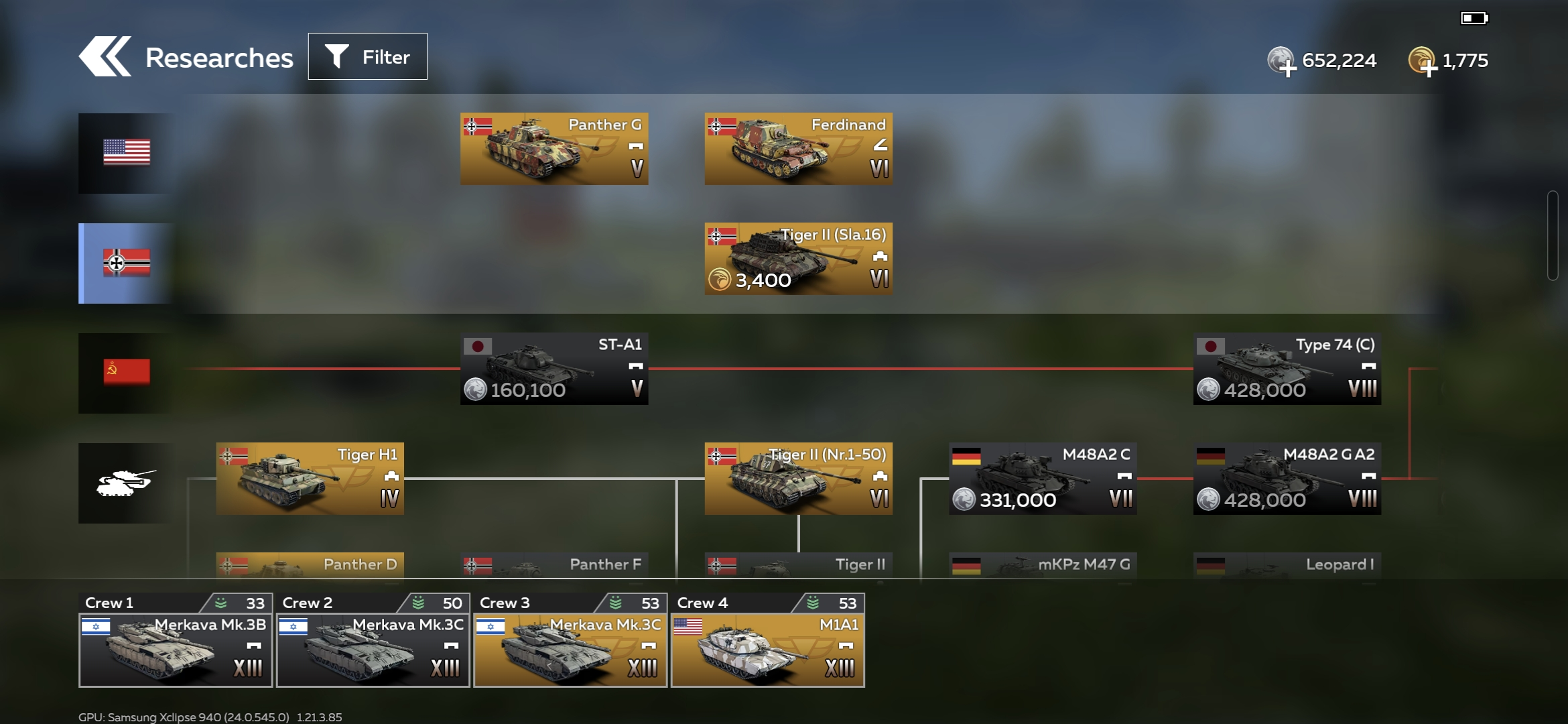 اکانت قوی War Thunder Mobile مناسب کسانی که میخوان بدون گرایند طولانی با تانکهای تاپ بازی کنن.