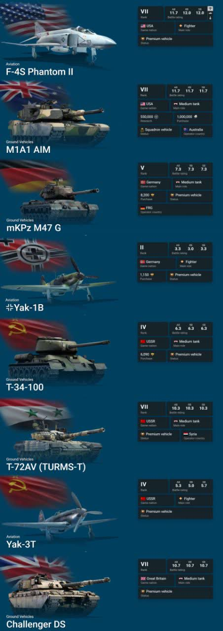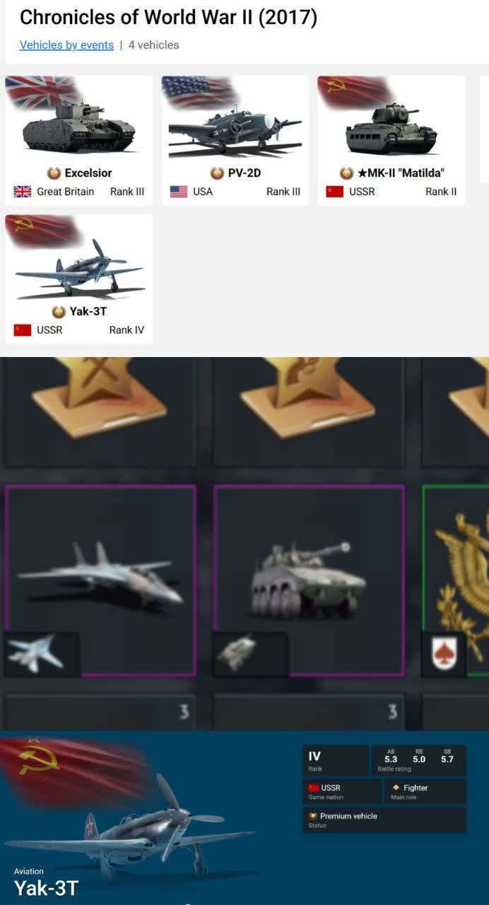 نام یونیت های خاص – ایونتی – پرمیوم و … : 2 عدد کوپن (اف 14 -بوکسر آلمان).یونیت بسیار کمیاب yak3 t روسیه همانند ای 100 کمیاب